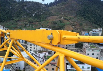起重臂方向检查塔尖拉杆及拉板销轴连接情况,拉板是否存在变形。